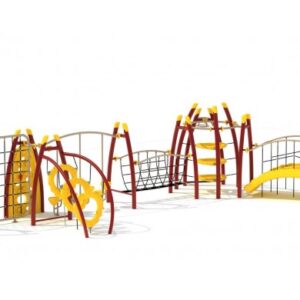The Lock Haven play system is designed to provide children with a fun and exciting workout, with elements that are meant to improve physical development. The structure has multiple net climbers which will have kids climbing in all directions. Its vast number of different activities means that tons of kids can play together on it at once. There is so much to do that kids can play for hours and still have more amazing activities to discover. There are all sorts of overhead climbers for upper body development, including a Curved Overhead Swinging Ring Ladder, an Overhead Horizon Climber, and a Combination Manhole Rope Climber. For balance and coordination, there is a Lily Pad Bridge, Floating Bridge, and Curved Floating Ring Ladder. Other unique activities that kids love include an Overhead Spinner, Triple Wing Climber, and Maze Rung Vertical Ladder.